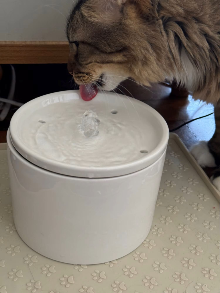 Made from sturdy ceramic, it’s safer and easier to clean than plastic fountains. The 1-liter capacity is ideal for smaller pets, offering enough water for daily use without taking up too much space.